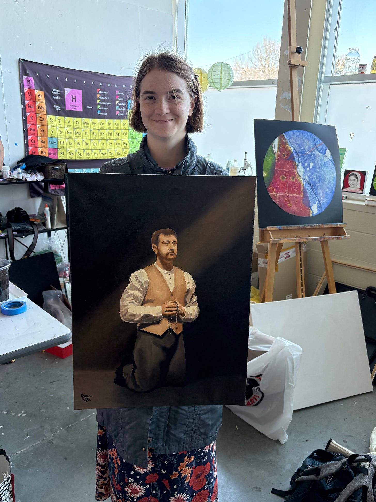 Rebecca is an incredible artist and has a wonderful story that needs to be share d and I hope to do so in the near future! In the meantime, here she is holding her latest work: