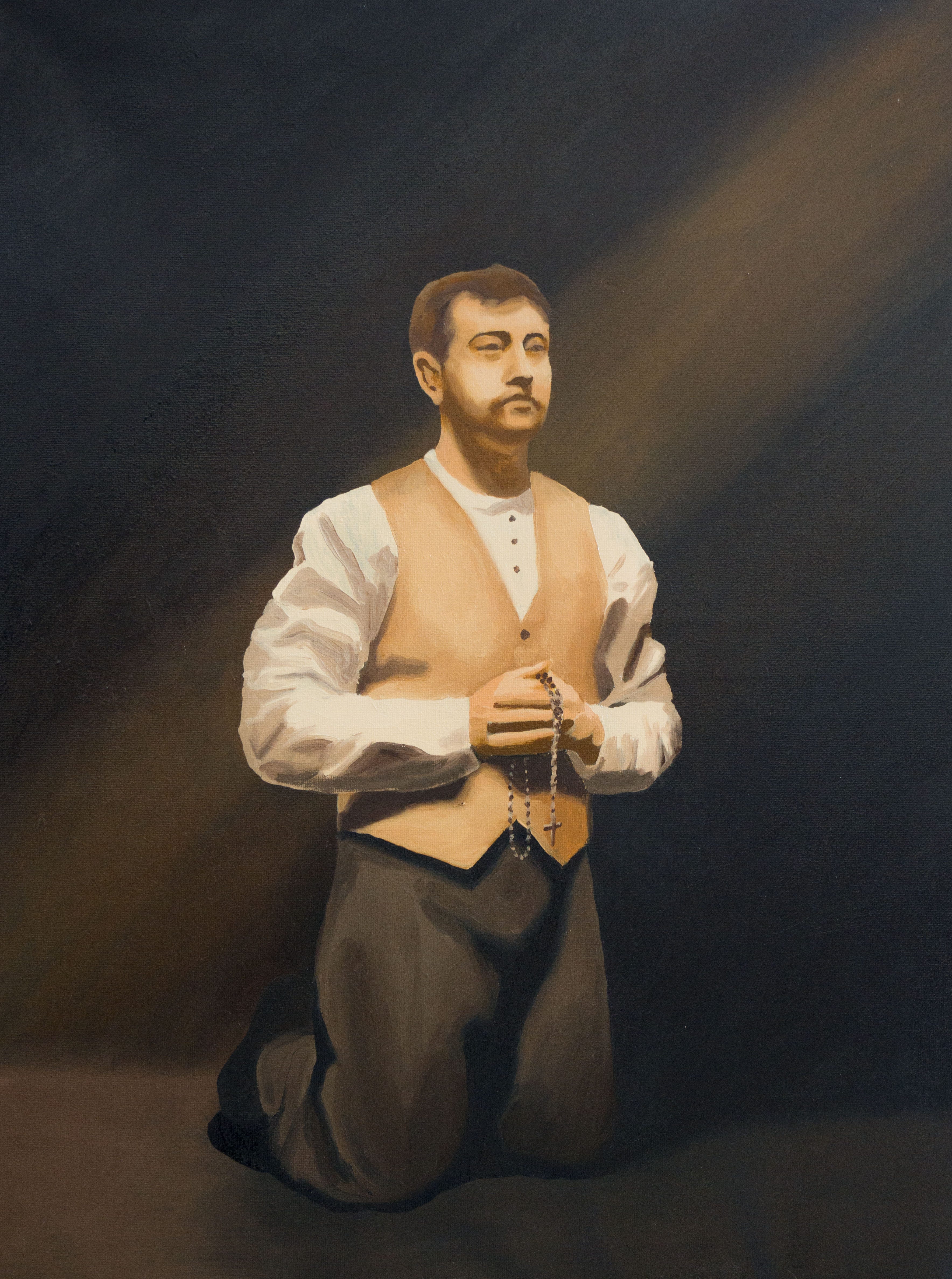 To that end, I enlisted the help of my friend Rebecca Giles to create a new image of Matt Talbot that we can use for relic cards, pamphlets and other resources to promote Matt’s cause. We loved an image from the film but were afraid that if we used the actual picture people might think it was really Matt Talbot. We are only aware of one actual photo of Matt and it was taken towards the end of his life.